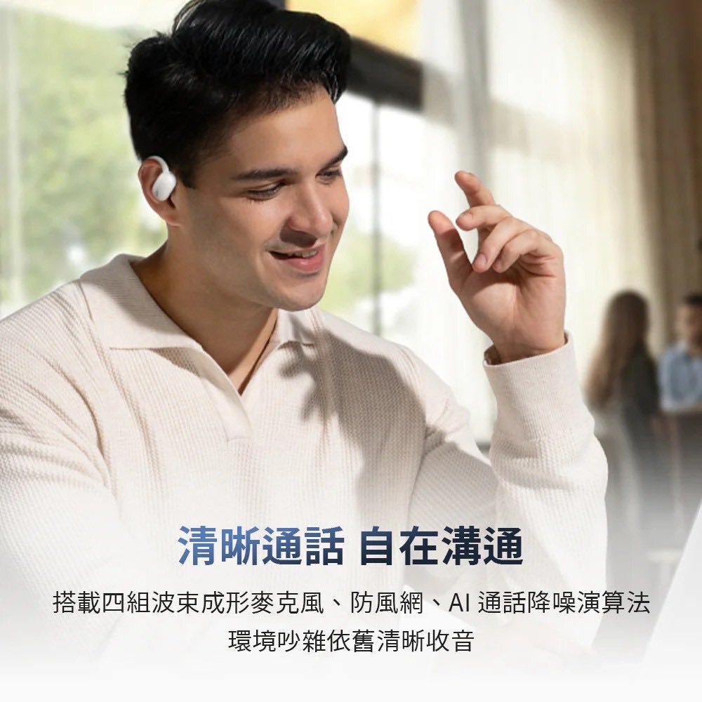 它是「氣傳導耳機」——不會塞耳朵,也不用夾在骨頭上